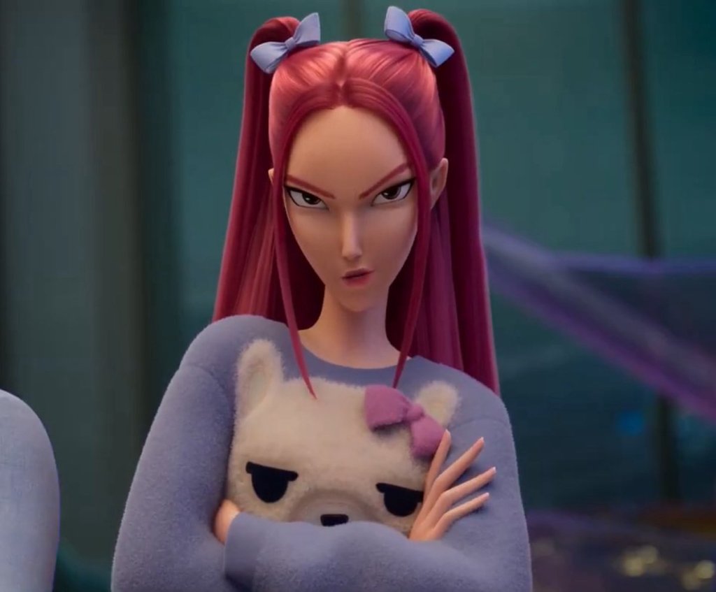 Rumi is the purple long-haired lead singer who is secretly half-demon. Her goal in life is to seal the Honmoon so no demons can come into the world again. Thinking that it would somehow fix her, she devotes herself to the Honmoon and fights to close it forever.